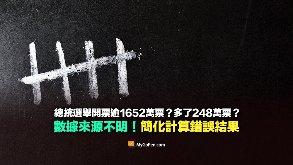 【錯誤】總統選舉開票多了248萬票?數據來源不明!以簡化數據計算錯誤結果