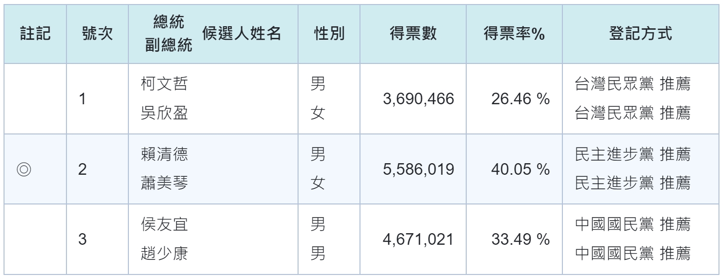 實際上, 3 人開票總數即「 3,690,466 + 5,586,019 + 4,671,021 = 13,947,506 」,並非傳言提及的 1,600 多萬票;最後再以「 13,947,506(有效票) + 100,804(無效票)」計算,即能得出總統副總統選舉投票人數為 14,048,310 人。