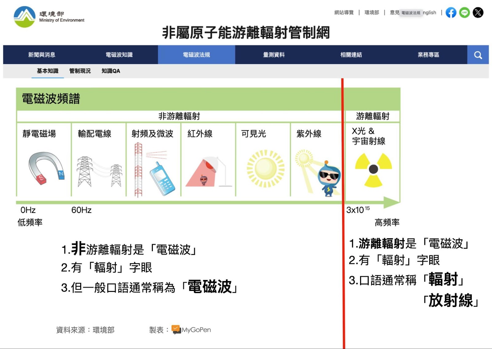 MyGoPen 進一步查詢環境部官網「非屬原子能游離輻射管制網」基本知識:什麼是電磁波」,詳細地提到更多資訊: