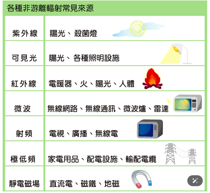 資料來源:環境部 「非屬原子能游離輻射管制網」基本知識:電磁波從哪裡來」
