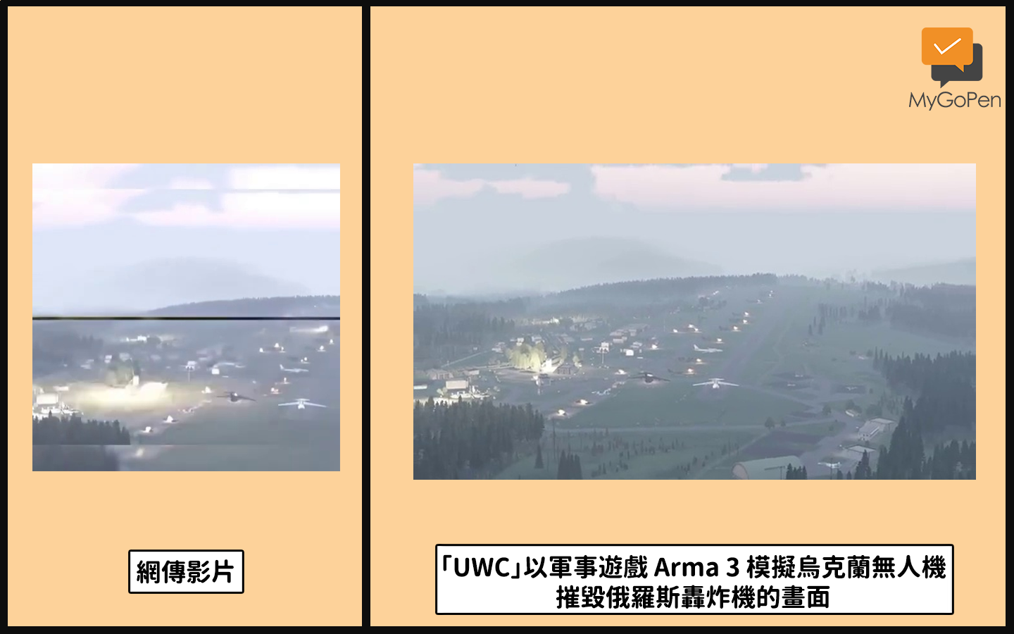 【查證】俄41架戰略轟炸機遭烏克蘭「蜘蛛網行動」炸毀影片?軍事遊戲模擬畫面