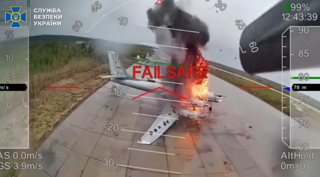 根據《中央社》報導, 2025 年 6 月 1 日,烏克蘭國家安全局(SBU)發動大批無人機深入俄羅斯境內數千公里,奇襲 4 座俄國空軍基地,造成俄國 41 架俄羅斯軍機全毀或半毀,折損價值高達 70 億美元,烏克蘭總統澤倫斯基表示,這是俄屋戰爭以來「攻擊距離最遠的行動」,並稱讚其成果輝煌。