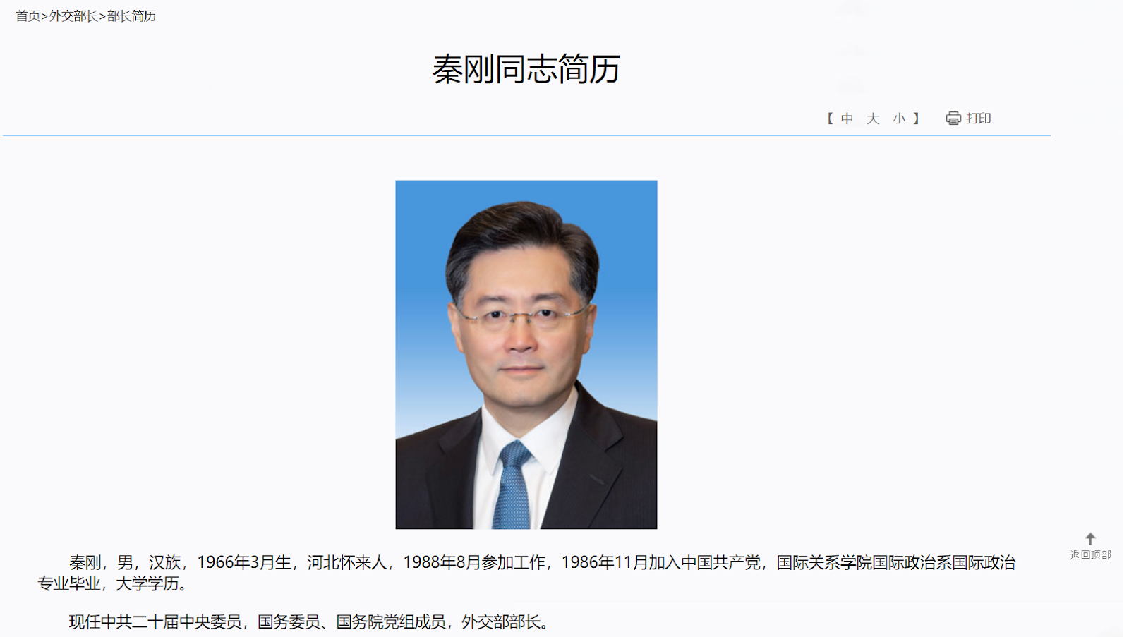 【錯誤】戰狼秦剛遭中國外交部官網除名?資料仍在官網上