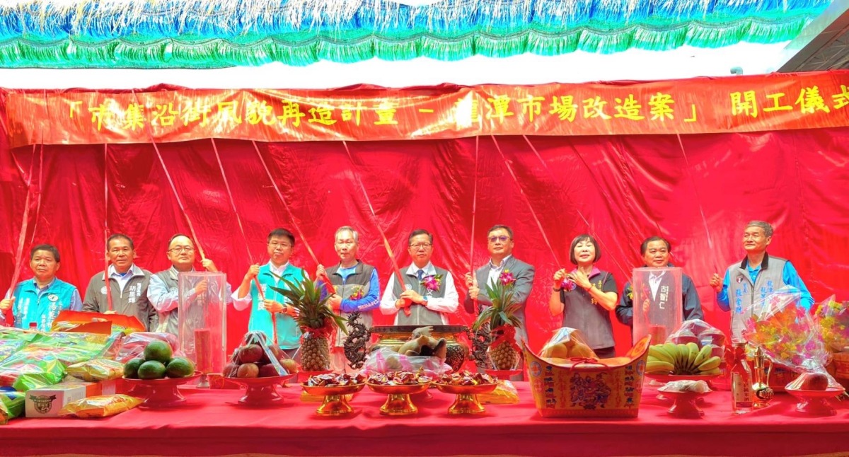 為提升龍潭市場攤商工作環境與友善採買空間,配合經濟部推動傳統市場振興措施,桃園市政府經濟發展局以「龍潭市場改造案」向經濟部申請「市集沿街風貌再造計畫」補助,總經費計7,000多萬,於今(11)日上午辦理開工儀式,市長鄭文燦親臨主持,並邀請經濟部中部辦公室主任郭坤明共襄盛舉。