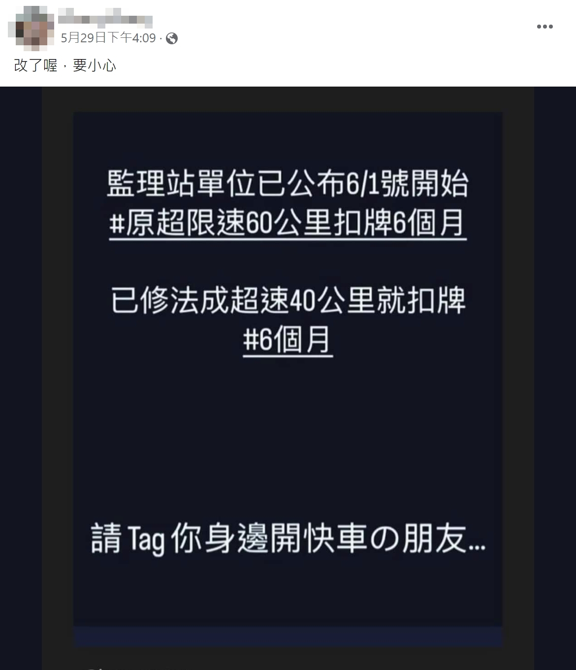 監理站單位已公布 6/1 號開始#原超限速 60 公里扣牌 6 個月,已修法成超速 40 公里就扣牌#6 個月,請 Tag 你身邊開快車の朋友…
