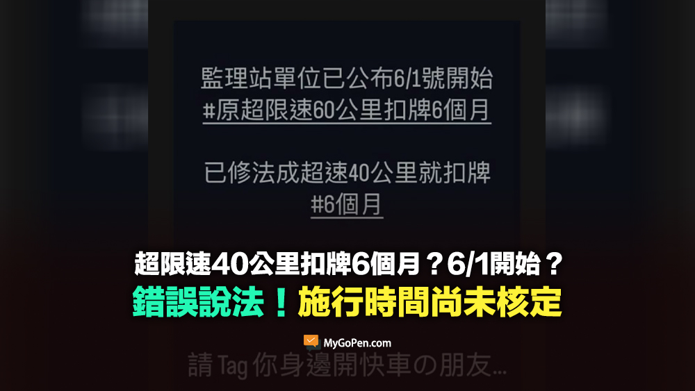 【易誤解】超過限速40公里扣牌6個月?6/1正式上路?施行日期未定!交通部尚未報行政院核定