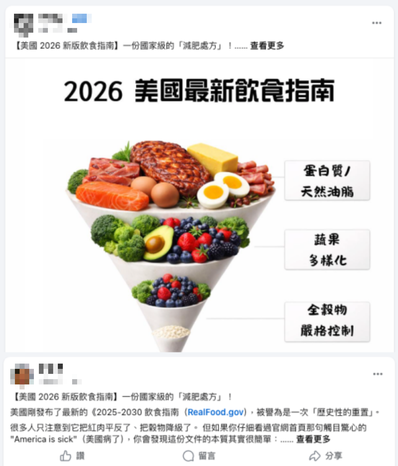 傳言說「美國 2026 新版飲食指南,一份國家級的減肥處方」、「推翻過去 40 年越減越肥的舊邏輯」、「這不是一份給健康人的養生建議,而是開給代謝失靈、體重過重者的急救處方」。