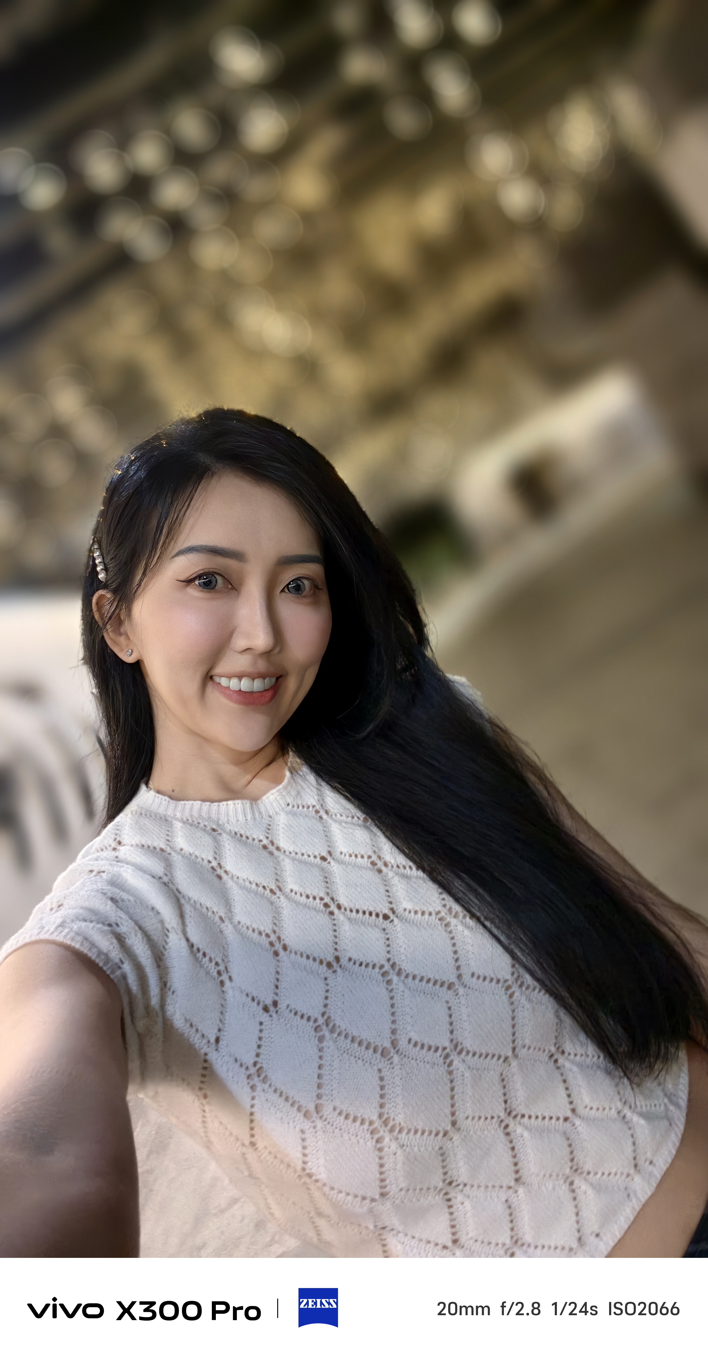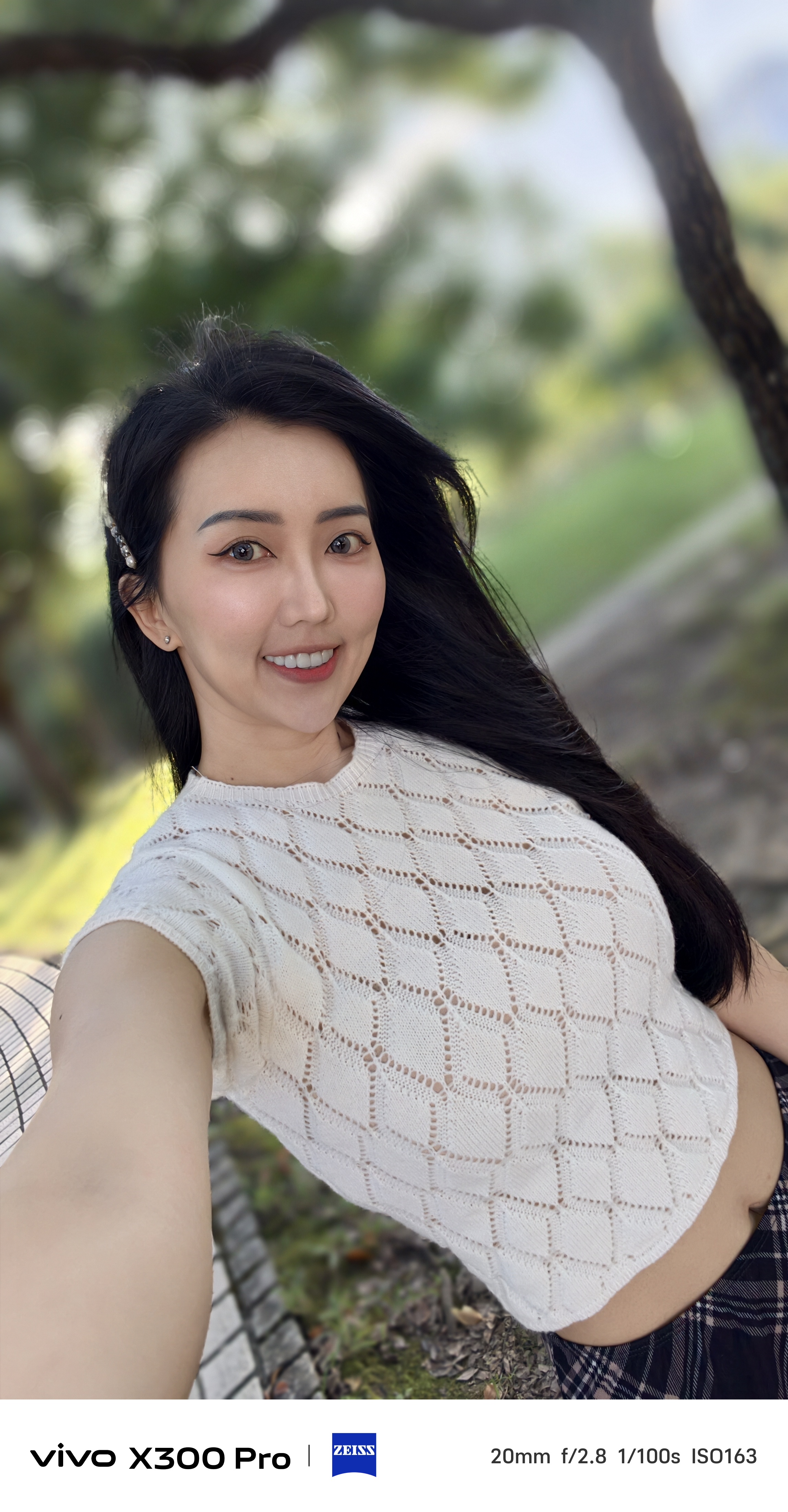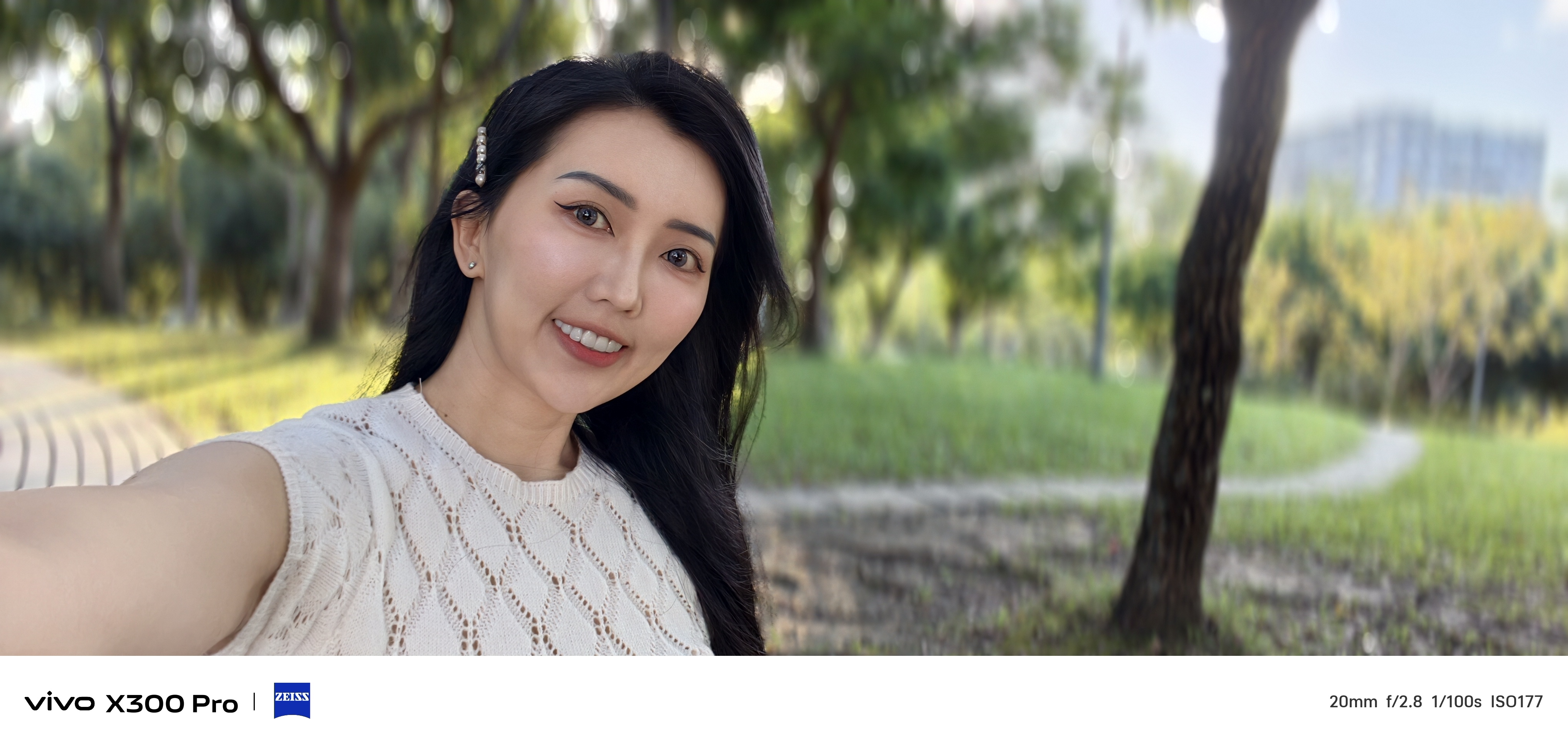 vvio X300 系列升級搭載 5,000 萬畫素自拍鏡頭,除了保留 F2.0 大光圈設計外,這次也都支援 92° 廣角攝影,可以容納更寬廣的自拍畫面。而 X300 系列的自拍不僅只有基本的美顏、美妝功能,主打的蔡司人像風格濾鏡,提供 Biotar、Sonnar、Planar、Distagon 與 Cinematic 合計 5 種虛化光斑效果,其中 Cinematic 推薦使用橫式拍攝,實拍效果很有電影感的畫面氛圍。
