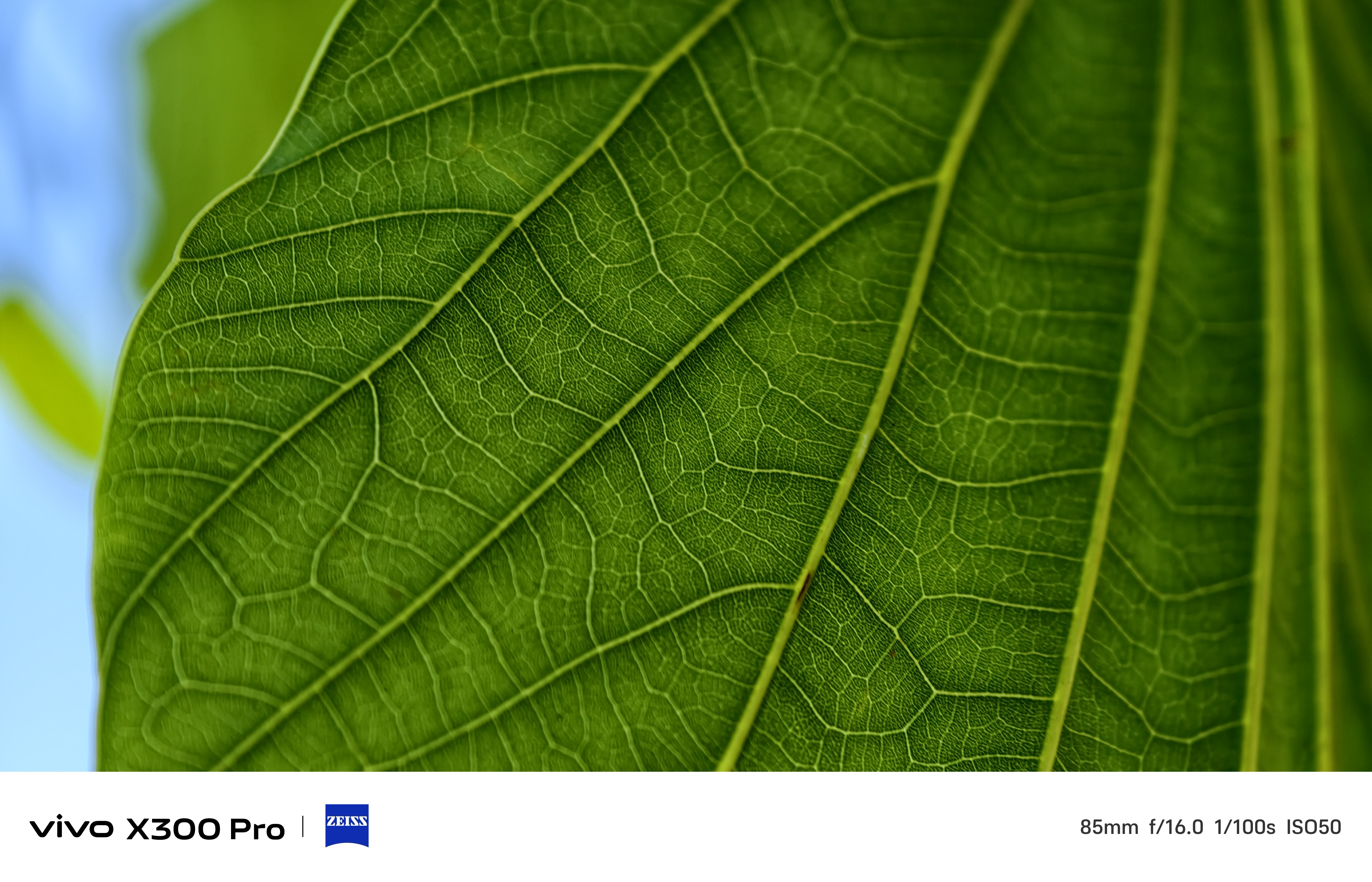 隨著 vivo X300 Pro 搭載全新的「蔡司 2 億畫素 APO 超級長焦鏡頭」,今年的攝影重點可以簡單分成「長焦攝影」與「2 億畫素」等面相。首先,X300 Pro 的長焦鏡頭可實現 3.5x 光學變焦,以及最高 100x 數位變焦能力,不僅可以把畫面拍的夠遠,透過長焦鏡頭也能拍出更加自然的淺景深效果。另外也具備長焦微距功能,想要清楚拍出葉片紋理不是問題。