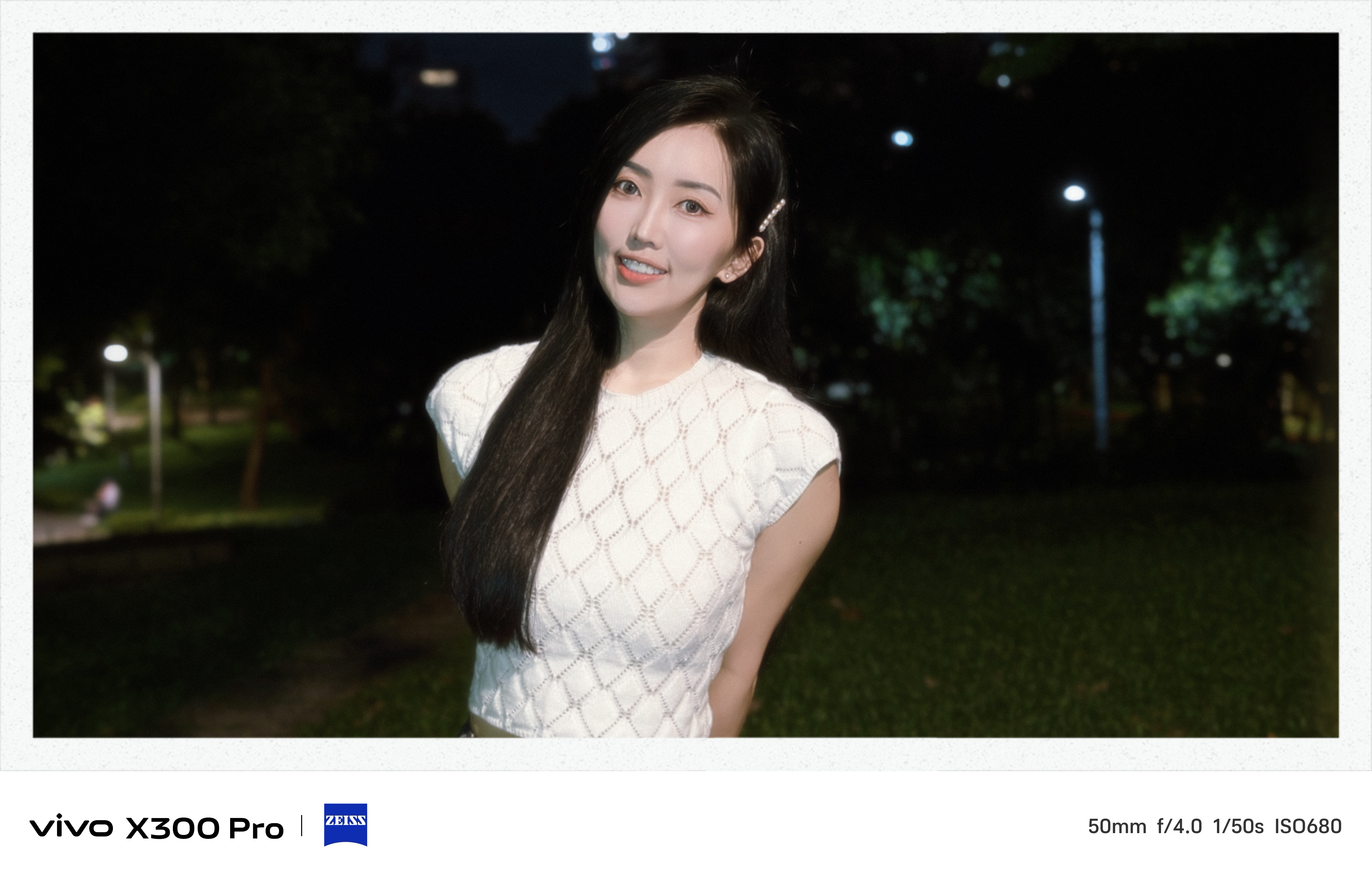 經過與蔡司的長期合作,vivo X300 Pro 除了在人像光斑取得極高的攝影成就,濾鏡方面同樣不容小覷。X300 Pro 内建的蔡司色彩濾鏡除了有黑白、質感、鮮明、自然、負片、正片、清透藍色調等模式,隨著首度導入智慧變焦閃光燈,這次也全新加入「撕拉片」與「CCD」濾鏡,使用時系統會自動啟用閃光燈進行智慧補光,實拍效果相當有特色,推薦大家可以嘗試看看。