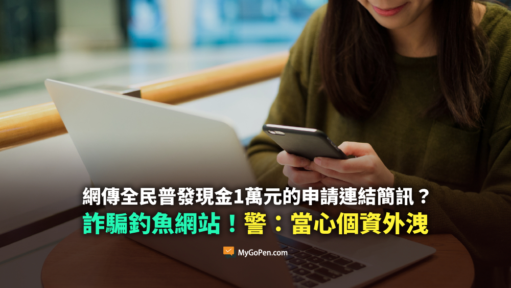 【查證】網傳全民普發現金1萬元的申請連結簡訊?詐騙釣魚網站!警:當心個資
