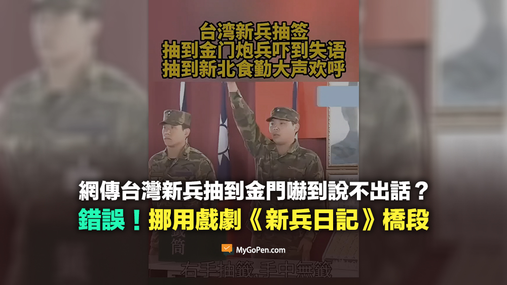 【錯誤】網傳台灣新兵抽到金門嚇到說不出話?不實描述!挪用戲劇《新兵日記》橋段