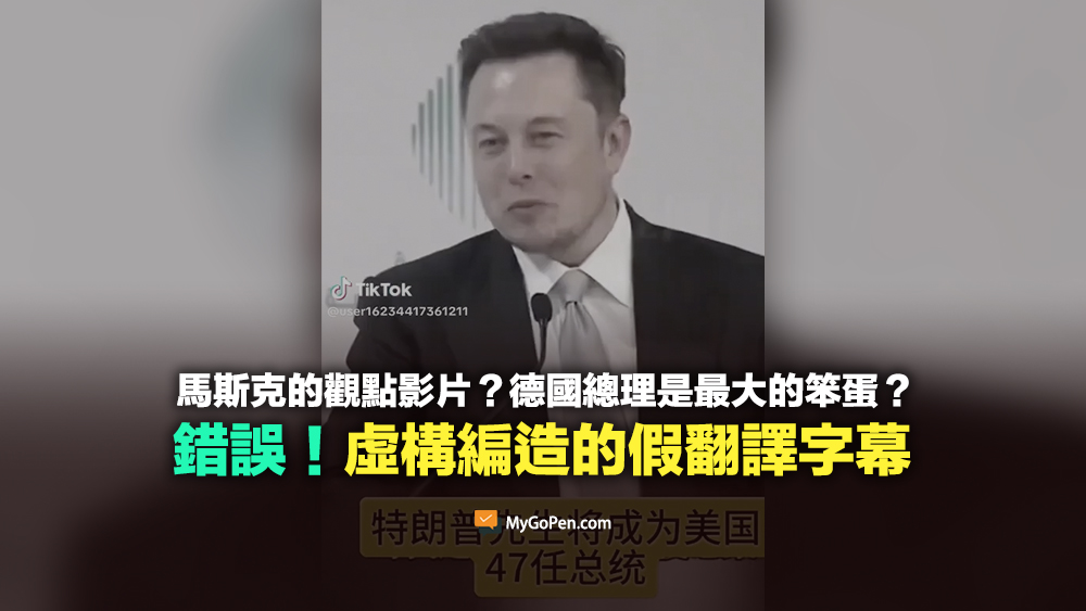 【錯誤】馬斯克的觀點影片?德國總理是最大的笨蛋?虛構編造的假翻譯字幕