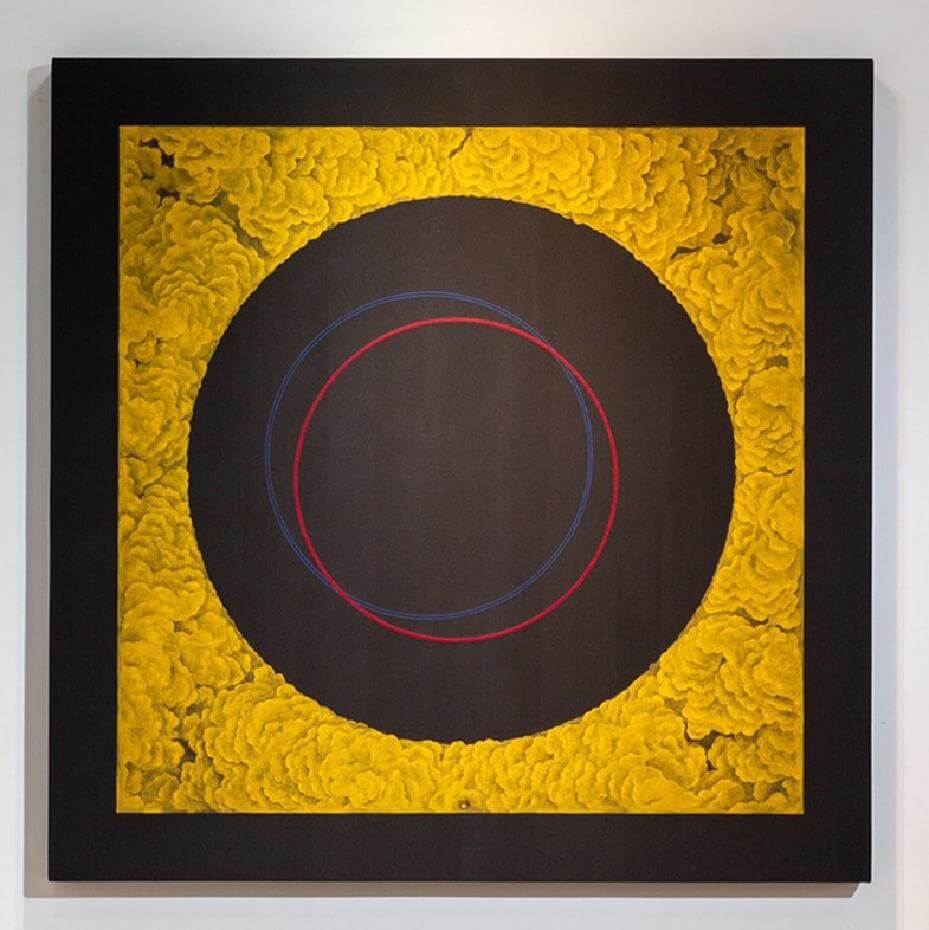 洪東祿,《密雲不雨》,120x120x5cm,2021,礦物色粉 鹿膠 麻布。圖/問空間提供