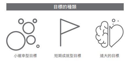 我將目標分成三種類型。小確幸型目標、短期成就型目標、遠大的目標,然後找出最適合用來說明這些目標的圖案。