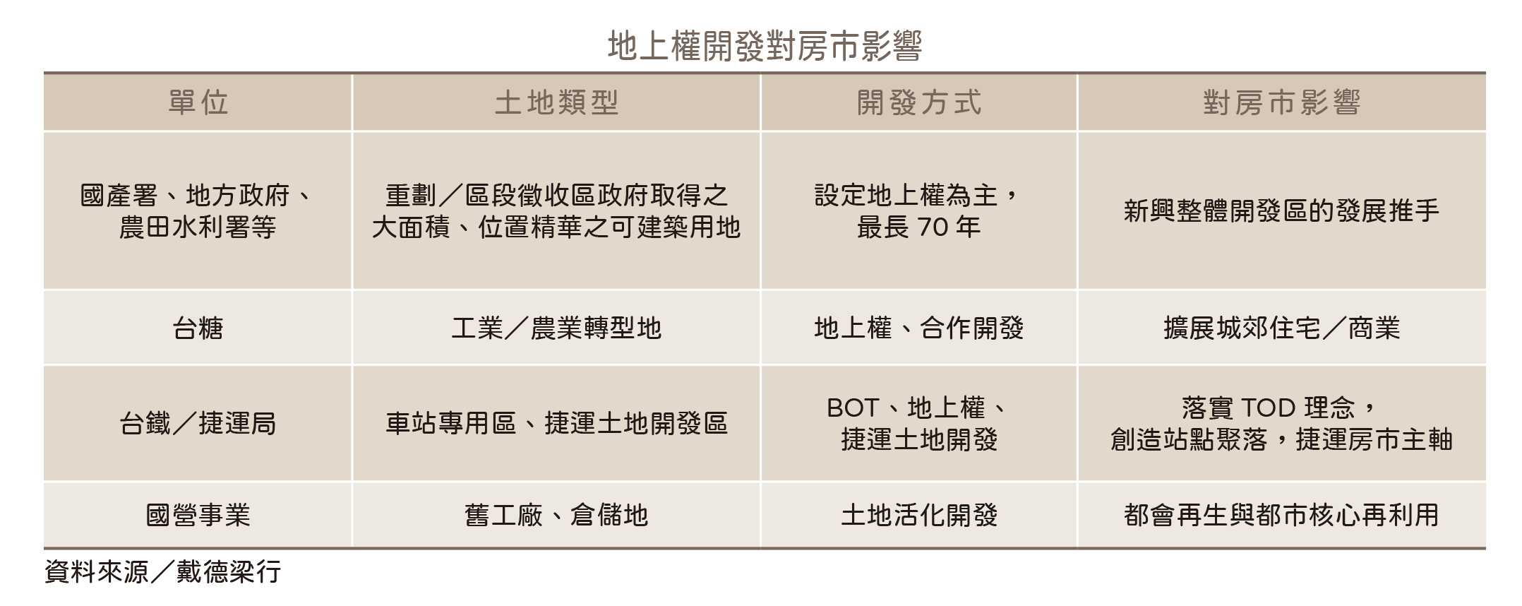 這股趨勢的背後,是地上權制度的漸趨成熟。從農田水利署、國產署、台糖到台鐵,各單位陸續釋出大量地上權標案,不再僅是財務操作工具,更成為城市規劃與生活導入的重要接口。從物流、社宅、商場、社區複合場域,地上權合作不僅讓政府活化資產,也讓民間企業取得低風險、可預期的長期據點。
