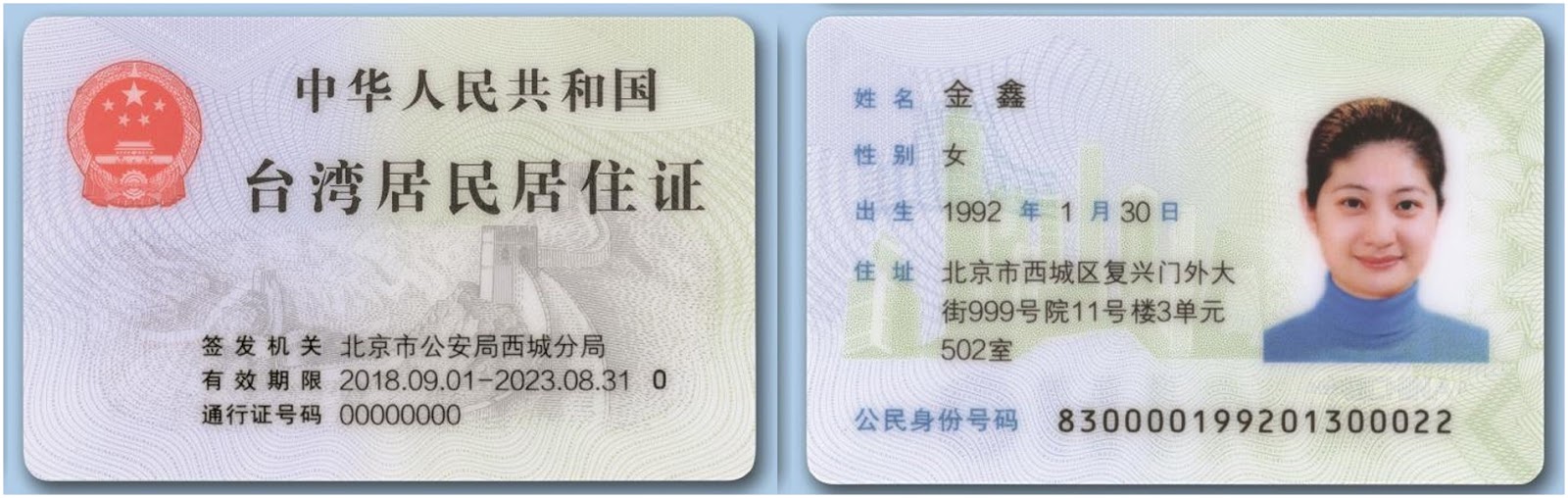 「居住證」是台灣民眾在中國大陸的有效身分證件,與中華人民共和國居民身分證類似,樣式如下。