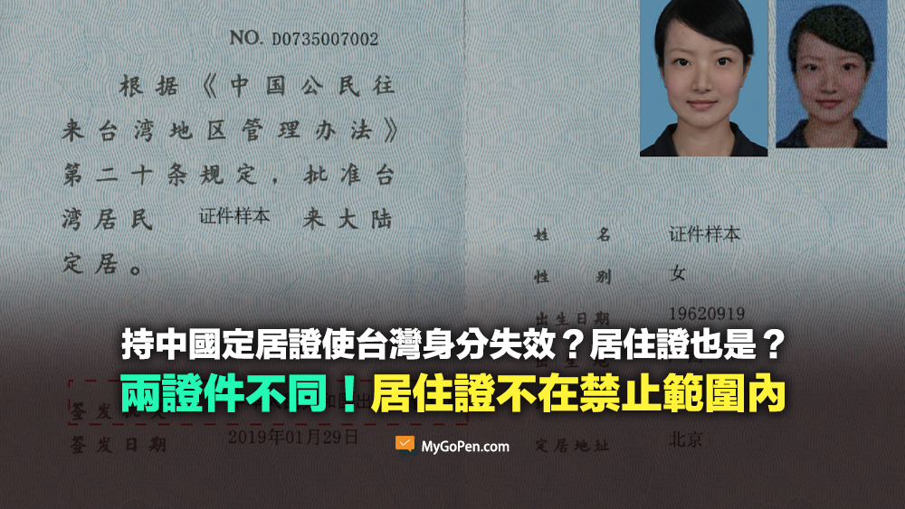 【易誤解】持中國定居證將喪失台灣身分?居住證也是?兩證件不同!居住證不在禁止範圍內
