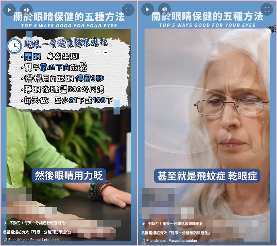網傳「名醫驚爆超有效 眨眼一分鐘預防眼退化」影片,提到「眨眼」加上「看遠」能調節近視、老花、飛蚊症、乾眼症。但眼科的專科醫師表示,近視是看近清楚、老花是看近不清楚,兩者不但病因不同、症狀甚至完全相反,但傳言卻能用同一種方式改善二個完全相反症狀的疾病,傳言明顯不合理。眼科醫師提醒,現代人用眼過度而會關心眼科相關的資訊,但若是非專科醫師的說法還是要小心求證,以免誤信不但無效還可能延誤病情。