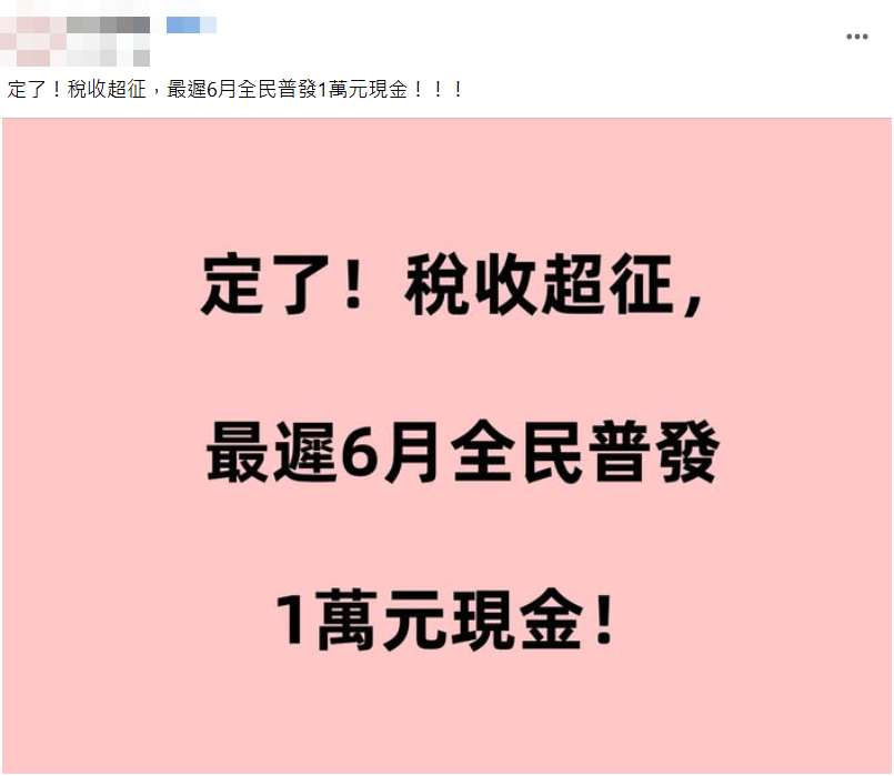 網傳最遲 6 月全民普發 1 萬元現金的訊息?
