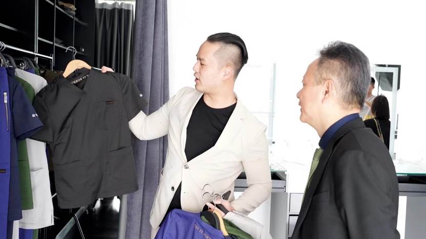 GF品牌從醫護服到西服、甚至到時尚女用套裝都是設計的主軸,能夠設計出年輕、時尚、專業又實穿的服飾,都歸功於Johnny Lin的妹妹,同時是GF品牌的主理人林明怡,她本身是一名服裝設計師,過去也經常擔任專業人士的造型顧問,提升他們的整體形象,而GF品牌的設計,不僅顏色選擇性多,也跳脫傳統大家對醫護服只能是綠色的印象,另外衣服的材質也講究機能性、衣服輕巧、洗了速乾也不用燙,不僅節省時間,穿起來專業漂亮、帥氣,林明怡分享有律師客戶,因為穿上他設計的西裝,增加打官司的勝訴率。
