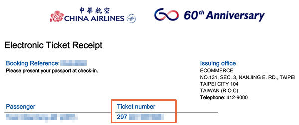 這個你也可以到你的電子機票上面找到,像下圖框起來的部份