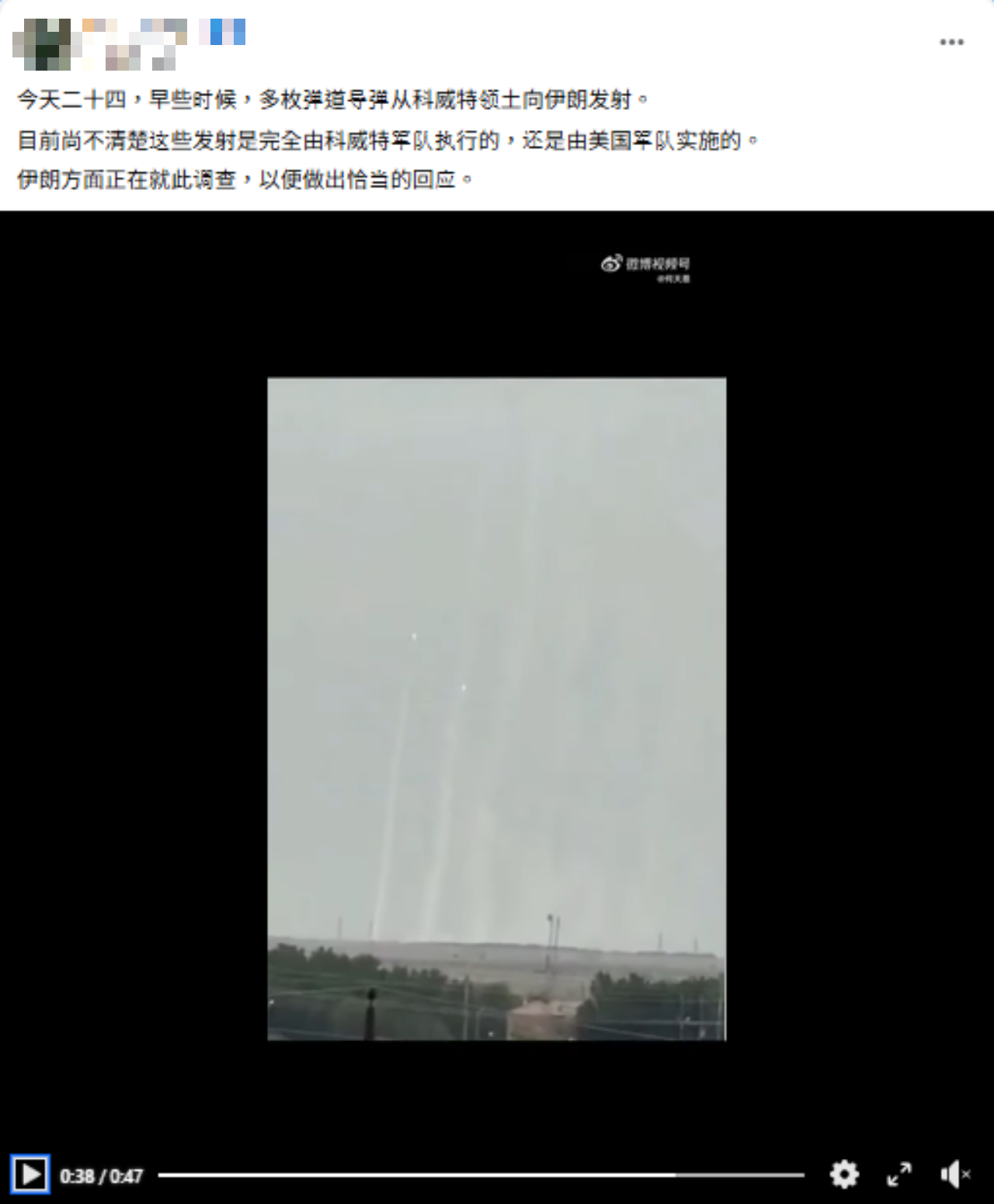 網傳多枚彈道飛彈從科威特領土向伊朗發射的影片?
