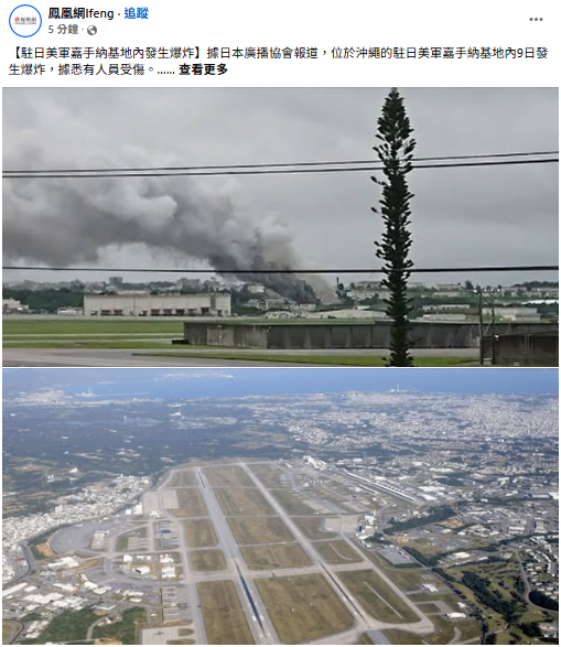 網傳駐日美軍嘉手納基地內發生爆炸的照片?