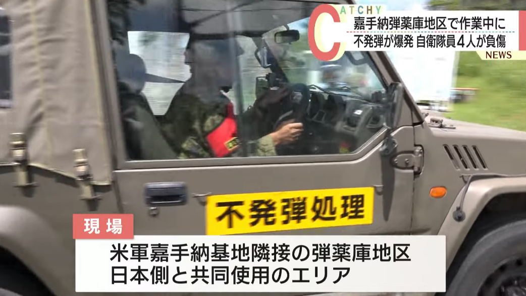 琉球朝日廣播新聞 YouTube - 嘉手納弾薬庫内で爆発/自衛隊の不発弾処理隊/隊員4人が搬送
