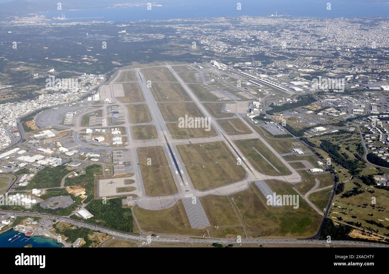 alamy -Photo taken from a Kyodo News airplane on Dec. 8, 2023, shows the U.S. Air Force's Kadena Air Base in the southern Japan island prefecture of Okinawa. (Kyodo)==Kyodo Photo via Credit: Newscom/Alamy Live News