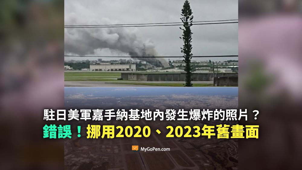 【誤導】網傳駐日美軍嘉手納基地內發生爆炸的照片?挪用2020、2023年舊畫面