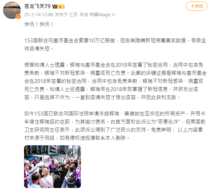 快讯!据说153国向盖茨基金会索要10万亿赔偿,控告隐瞒新冠…