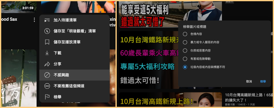 MyGoPen 在 9 月 4 日的查核報告中,曾提到民眾如遇此類農場影片,首要謹記「不要細究」,因為「想看影片說些什麼」代表你花時間看農場影片,觀看時數一長,頻道就有點閱收益。最好的做法是不要點擊;如果出現在推薦內容,可以點選「不感興趣」或「不要推薦這個頻道」,也可以善用 YouTube 的檢舉功能,選擇「錯誤資訊」或「垃圾內容或誤導性內容」。