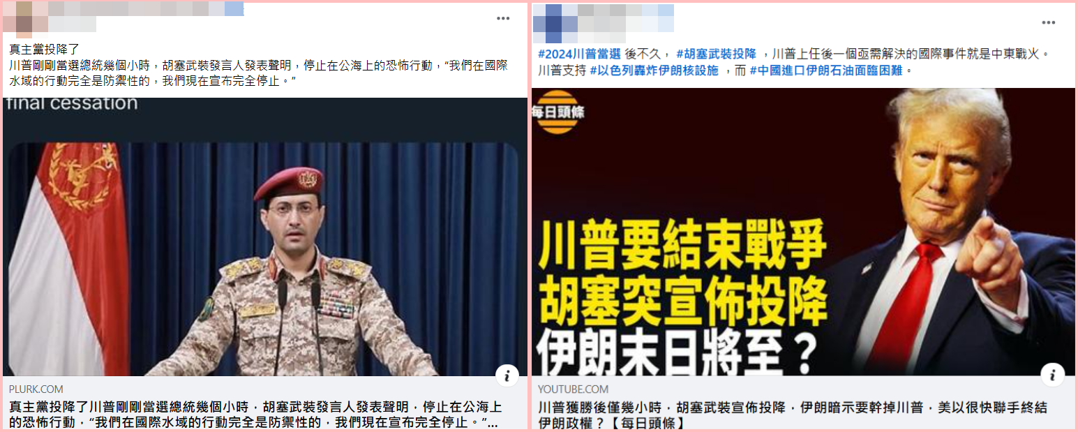 【錯誤】網傳川普獲勝後僅幾小時,胡塞武裝宣布投降?無根據之說法