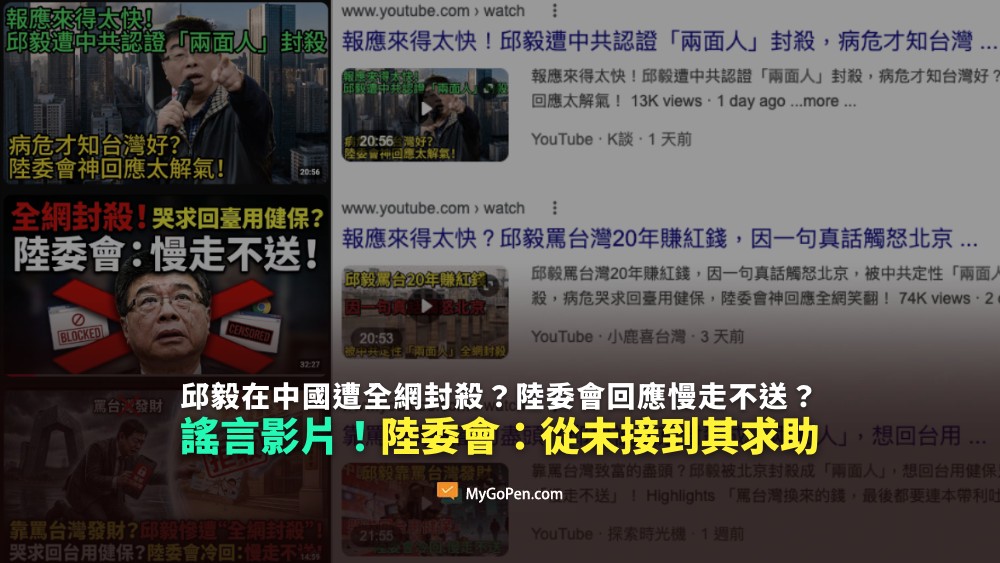 【錯誤】邱毅傳出在中國遭全網封殺?陸委會回應慢走不送?陸委會:從未接到其求助