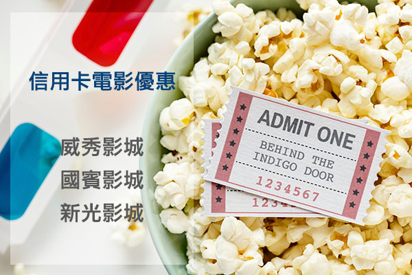 這裡首推第一銀行信用卡,在今年有「天天暢看電影.消費滿千享電影票優惠」活動