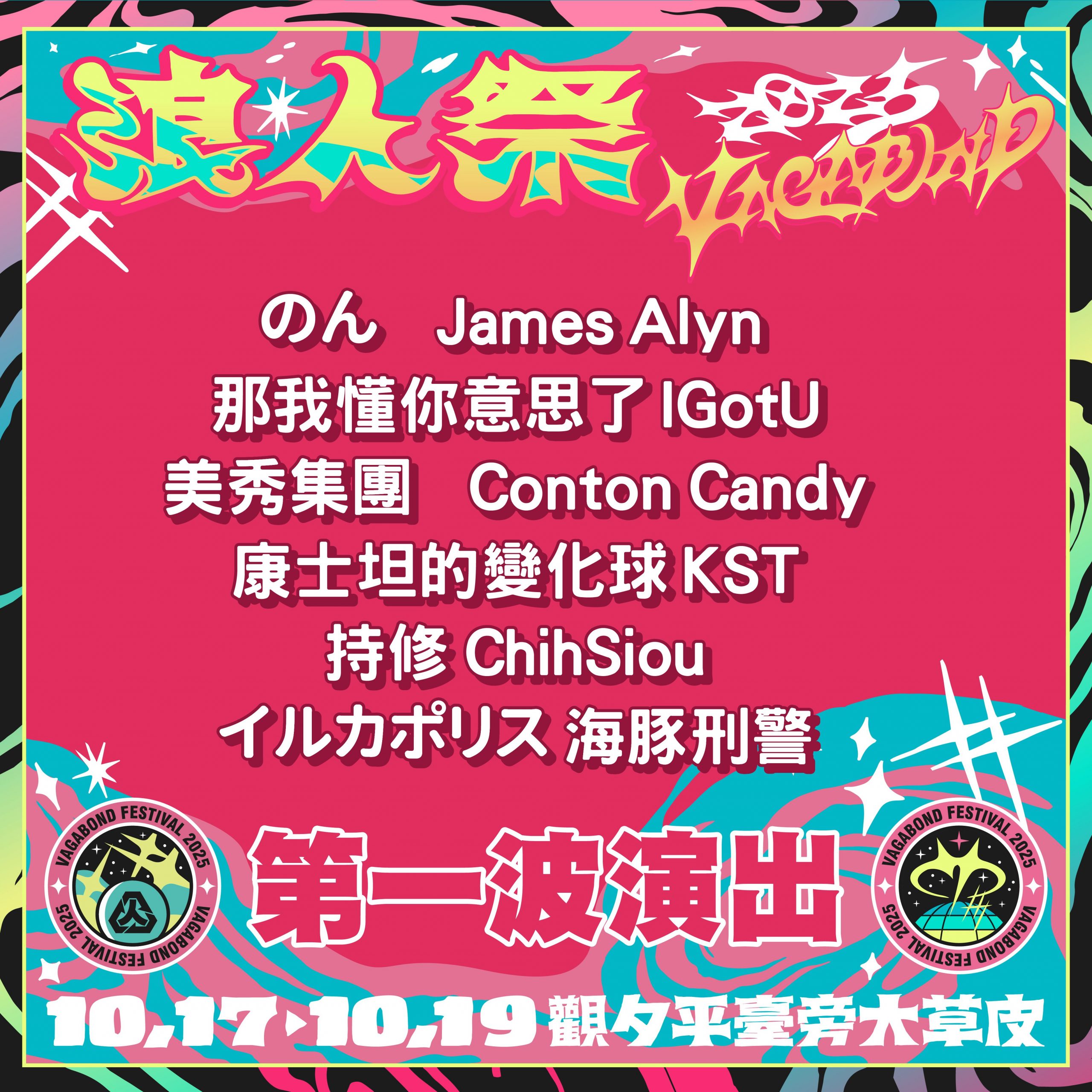 首波陣容除了有諸多樂迷熟悉的美秀集團、康士坦的變化球 KST、持修 ChihSiou、日前宣布復出造成轟動的那我懂你意思了 IGotU;海外卡司更請來日本知名演員のん(能年玲奈)、人氣泰國組合 HYBS 前成員 James Alyn、以及演唱動畫《SAKAMOTO DAYS 坂本日常》片尾曲〈普通〉的 Conton Candy!