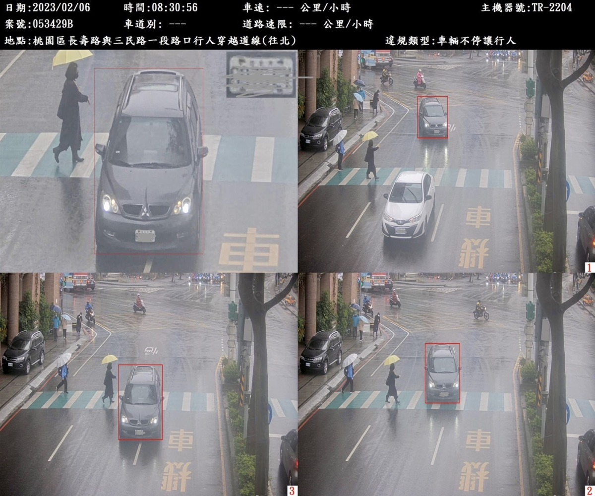 桃市警察局表示,除了警方現場攔停舉發,即時教育導正違規人觀念外,也會於桃園區中正路與復興路口及長壽路與三民路口設置未禮讓行人執法設備,可自動偵測不停讓行人違規,以距離行人行進方向一個車道寬(約3公尺)以內及前懸已進入行人穿越道上為取締認定基準,全天候防制危害行人安全違規行為。