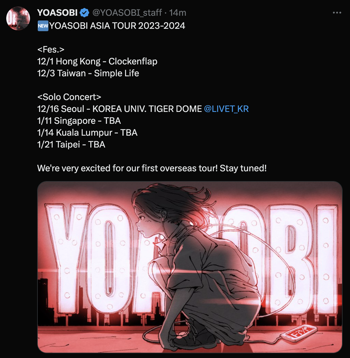 YOASOBI公布亞洲巡迴!12月參演台北簡單生活節!!