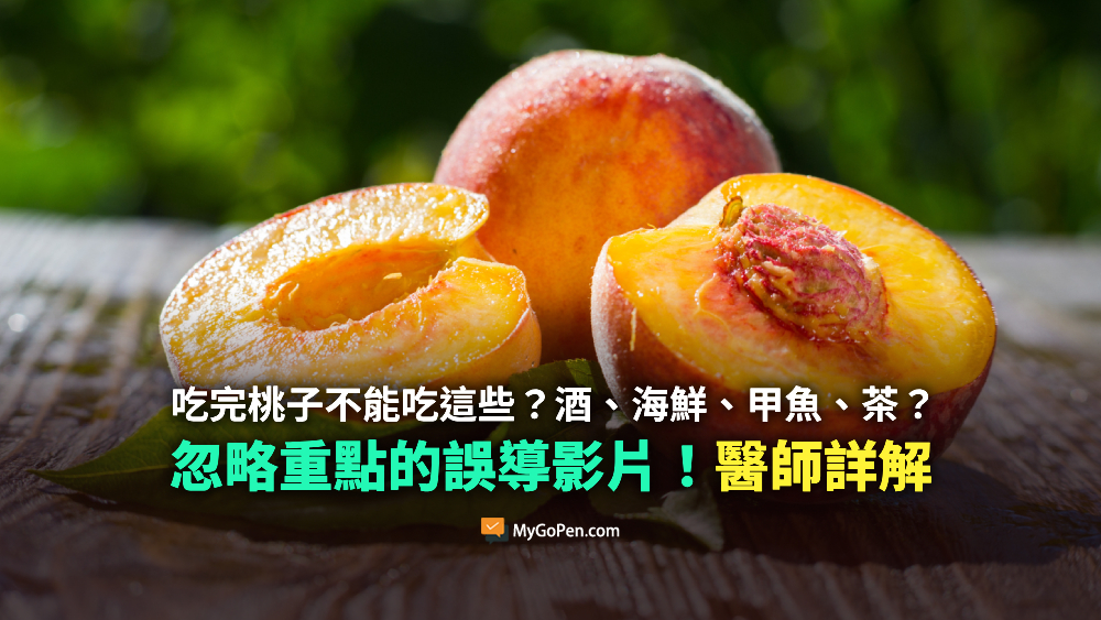網傳「你知道吃完桃子不能吃什麼嗎?」貼文,影片提到桃子的食用禁忌包括酒、海鮮、甲魚、茶。但專家表示,海鮮容易腐敗、甲魚根本不是民眾常吃的食物,而茶是刺激性飲品,傳言卻不講這些食物本身的特色、問題,卻將重點放在桃子,又不講這些可能發生交互作用的原因是桃子的黏性物質、或是什麼其他成分,傳言易誤導。