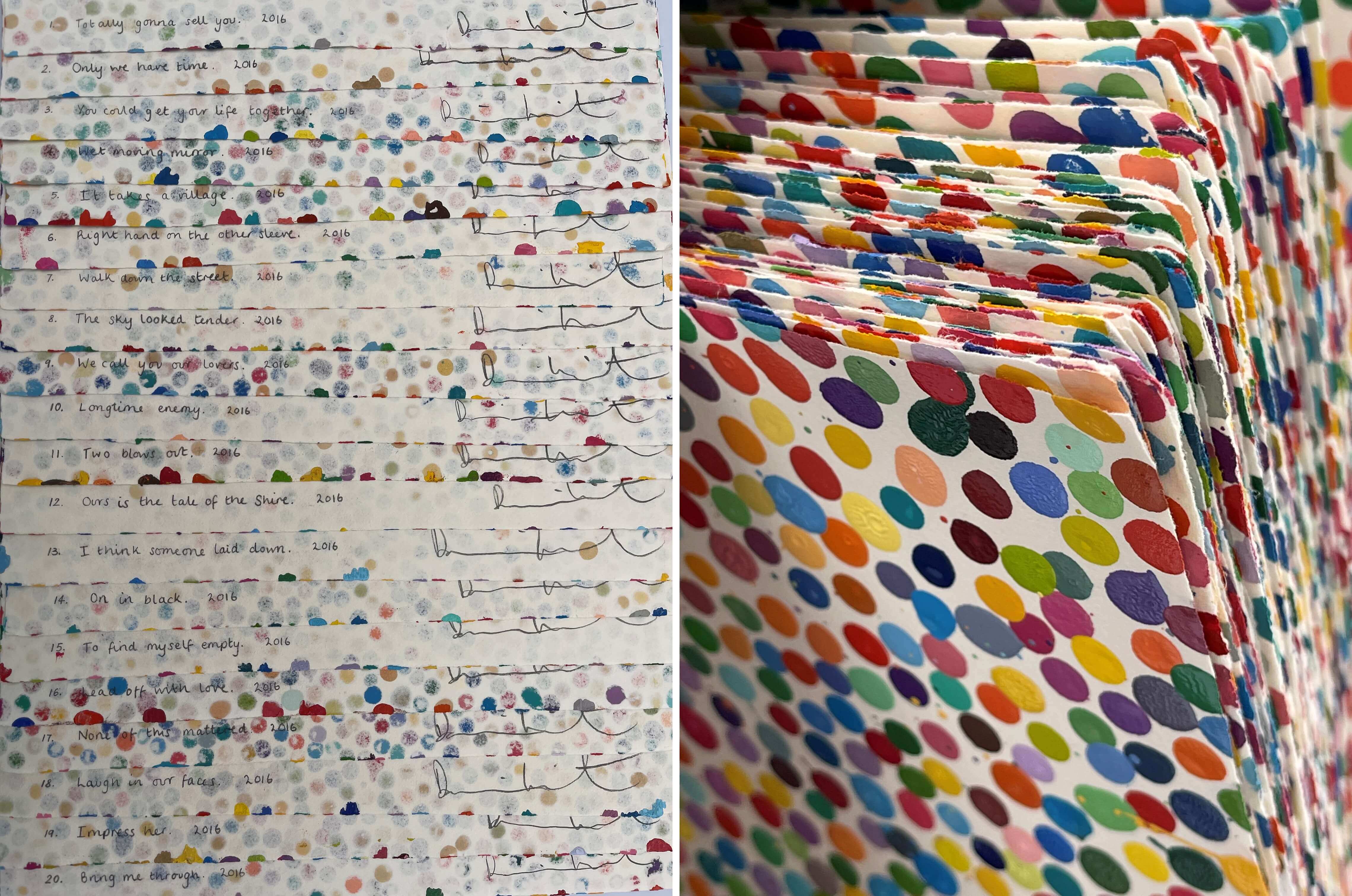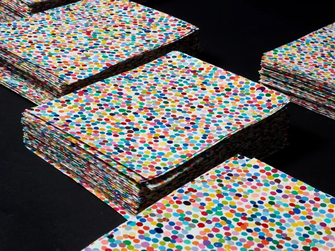 大約在2016年前後,Hirst以彩色的點狀結構描繪了一萬張的紙上油畫作品。以此為基礎在2021年,啟動了一個名為《The Currency》(貨幣)的創作計畫回應NFT的發展。而這個實驗的幾個階段分別是: