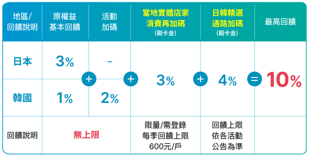 ※精選消費最高3.8%包含:(基本0.5%無上限)+(精選加碼3.3%,每期帳單回饋上限NT$1,000)