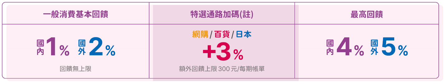 ★國內一般消費1% (含保費)、國外一般消費2%無上限