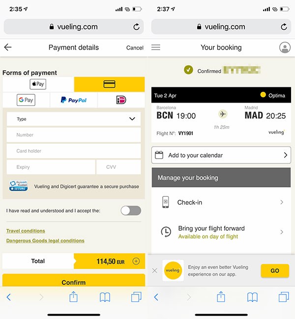 伏林航空(Vueling airlines)是以巴塞隆納為基地,所以相較下來票價也比較便宜,當然爾就直接選擇伏林航空