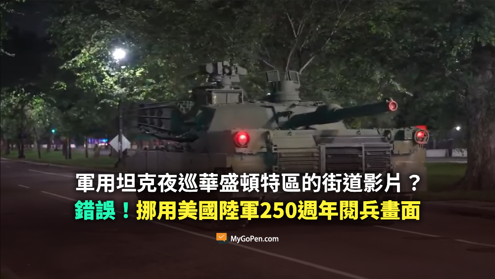 【錯誤】軍用坦克夜巡華盛頓特區街道影片?挪用美國陸軍250週年閱兵畫面