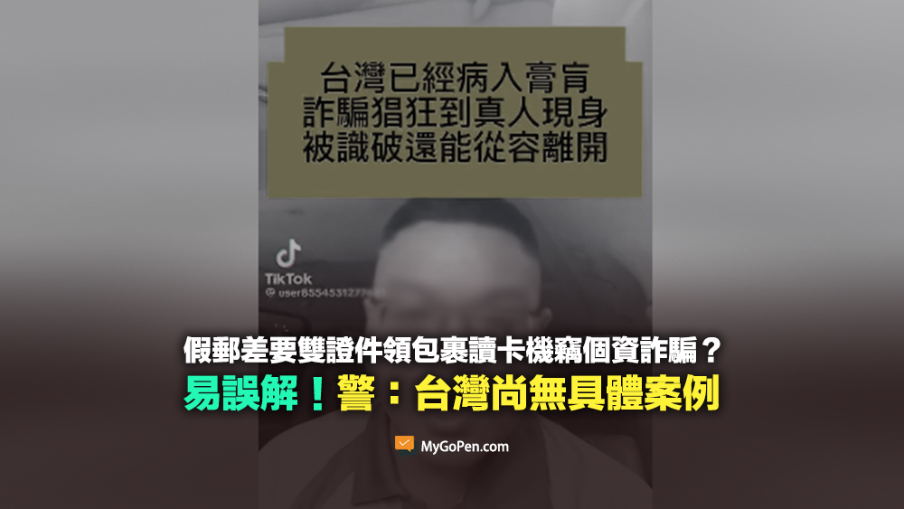 至於影片中提到的詐騙手法,MyGoPen 實際詢問刑事警察局,警方表示,近期並沒有出現如網傳所述的假郵差詐騙案例,目前在台灣也沒有具體的被害案例出現