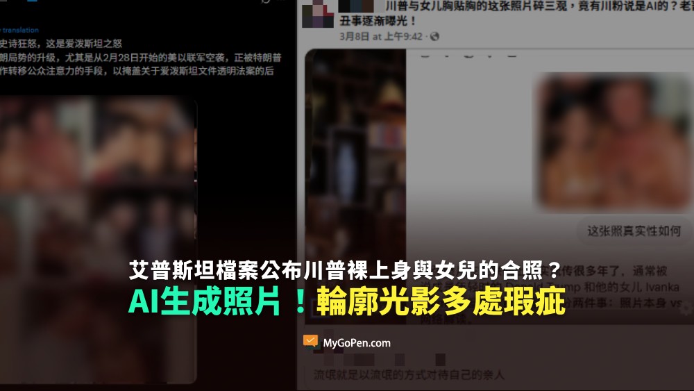 【錯誤】艾普斯坦檔案公布川普裸上身與女兒的合照?AI生成照片!輪廓及光影有多處瑕疵