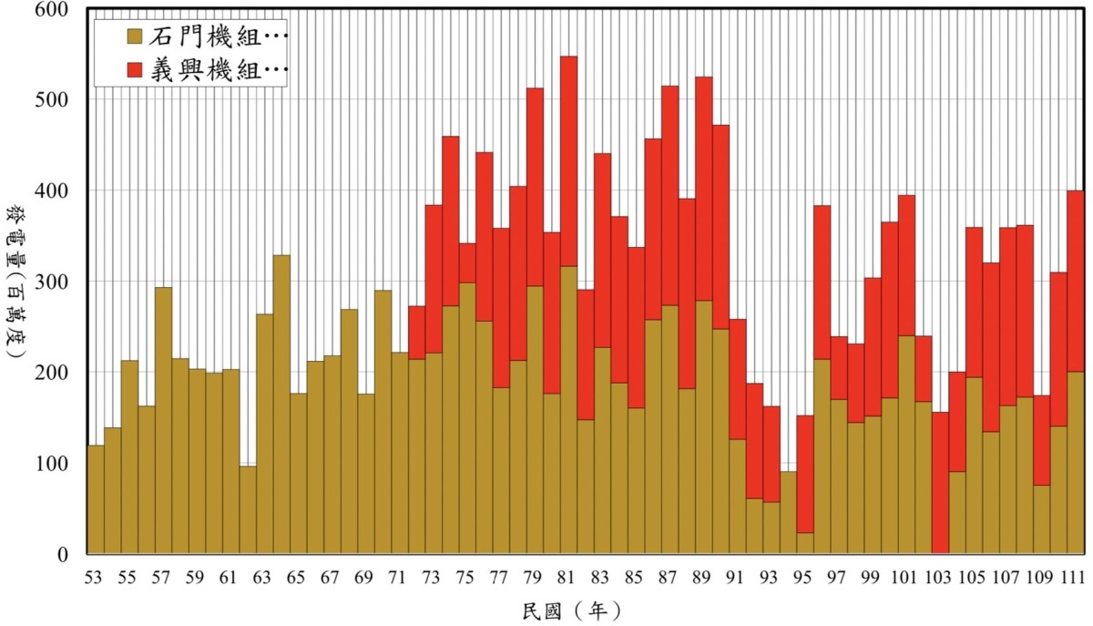 石門水庫歷年發電量統計。圖:北水局提供