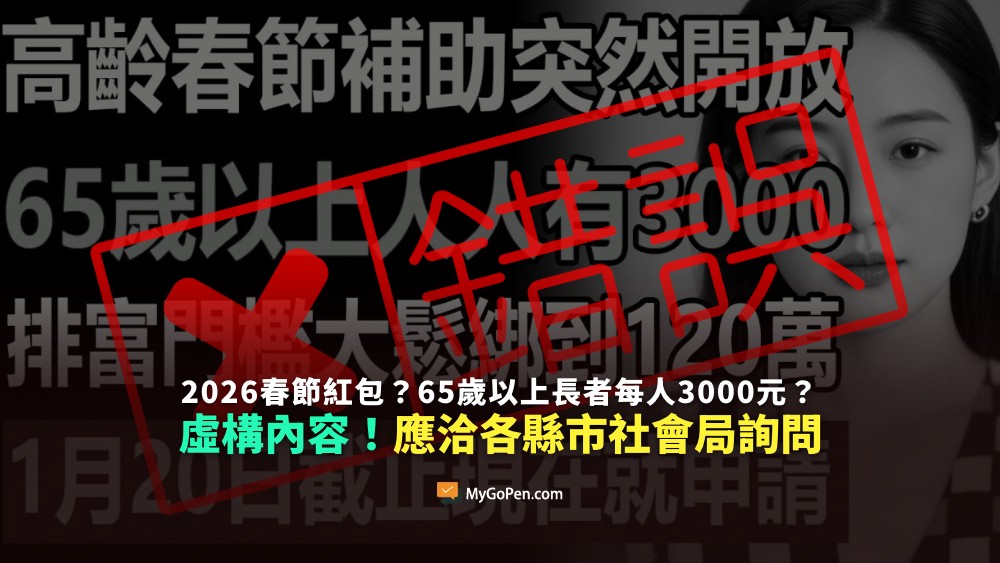 年關將近,社群平台流傳不少春節禮金的謠言,MyGoPen 於 2025 年 12 月 12 日發布的查核報告,即有內容農場影片聲稱年滿 65 歲可以領 12,000 元,這些都是錯誤資訊。