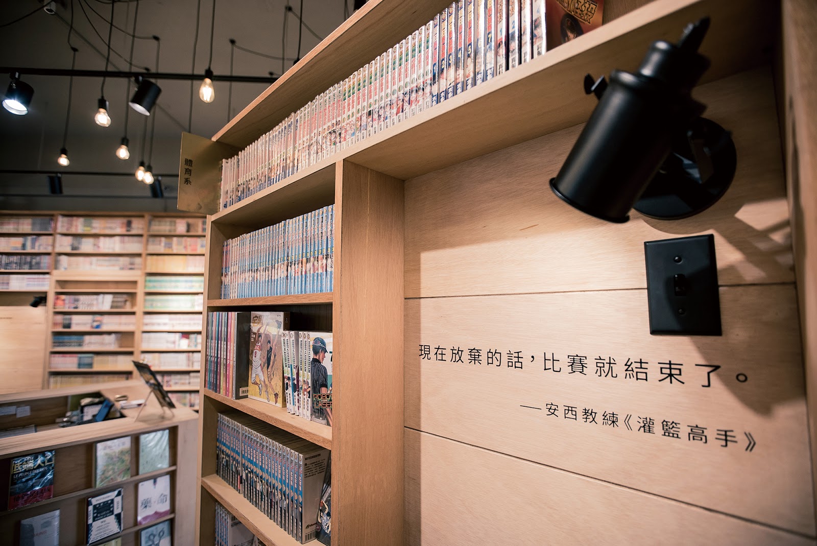 木製的書牆上布滿漫畫經典台詞,像是灌籃高手中安西教練的話:「現在就放棄的話,比賽就結束了。」這句話正是李昆霖人生真實的寫照,在經營學的比賽中征戰,充滿挑戰性的人生。「很多人會說現在人不太看紙本了,那是不是很難去經營這間店?但商場上有一句話說得很好,門檻愈高, 如果你做得進去,就能杜絕其他相同的競爭對手,舉例來說,現在漫畫店關了很多,原本熱愛閱讀的人沒地方去,Booking這間碩果僅存的漫畫書店,就成了他們會想來拜訪的地方,等於我們蒐集到了全台灣愛看漫畫書的人。」也或許是這樣的念頭,才能在夢想與現實相牴觸時,激發更多可能,保留下紙本的文字,讓閱讀存活。「開書店,選書的品味是基本的功力,再來開書店的人需要『誠實』,舉例來說,讀者可能會請你推薦某一本書,如果你覺得這本書不好看、或是沒看過的話也要誠實的跟顧客說。書店一開始的核心精神,就是要把好的知識傳承給更多人知道,如果說不好的書還硬推薦,那是浪費大家的時間,誠實是做生意基本的道理。」
